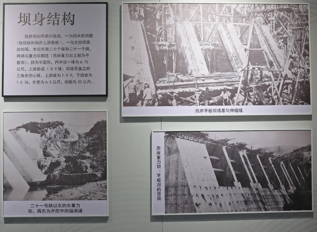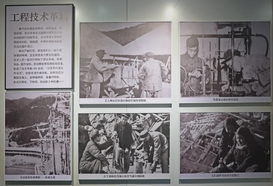 1951年10月,工程開工建設(shè),來自全國各地的建設(shè)者、大學(xué)生響應(yīng)黨的號召,迅速集結(jié)在治淮工地,為新中國第一座鋼筋混凝土連拱壩建設(shè)奉獻青春、揮灑汗水。建設(shè)者們面對世界所建連拱壩不多、國內(nèi)更無先例、相關(guān)經(jīng)驗并不成熟、連拱壩設(shè)計技術(shù)難度大和建造工藝復(fù)雜等難題,他們設(shè)計中刻苦攻關(guān)、勇于創(chuàng)新、精心設(shè)計,施工中嚴格控制施工工藝和施工質(zhì)量、精雕細刻,創(chuàng)造了多項當時國內(nèi)混凝土壩建設(shè)的先進技術(shù)。采用黏土心墻、鋼板樁、帷幕灌漿等技術(shù)解決了圍堰和壩體的防滲問題;采用電動卷揚機、鋼塔、竹質(zhì)腳手架配合手推車解決了水平及垂直運輸難題;采用拖斗、鋼索和電動卷揚機裝置解決了水下開采砂卵石難題。建設(shè)者們邊學(xué)習(xí)、邊實踐、邊討論、邊建設(shè),將佛子嶺工地培育成了“佛子嶺大學(xué)”,為新中國培養(yǎng)了一批優(yōu)秀的水利工程專家。