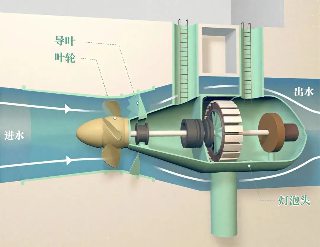 傳統(tǒng)軸流泵低揚程大流量復(fù)雜工況下泵站效率低下、結(jié)構(gòu)單一的問題,是工程設(shè)計階段的主要技術(shù)瓶頸。項目負(fù)責(zé)人沈繼華帶領(lǐng)設(shè)計團(tuán)隊通過對水泵機組的技術(shù)研究,突破傳統(tǒng)軸流泵低效桎梏,首次在國內(nèi)引入大型行星齒聯(lián)燈泡貫流泵技術(shù),成功突破了國內(nèi)(特)低揚程、大流量泵站水泵機組選型的難題。該技術(shù)可將水泵與電動機采用行星齒輪箱連接減速傳動,并布置在貫流泵燈泡體內(nèi),形成平直流道,使水流無需轉(zhuǎn)向即可高效通過,能量轉(zhuǎn)換效率達(dá)81%,遠(yuǎn)超傳統(tǒng)機組的65%~70%。為驗證這一技術(shù)的可行性,中水淮河公司積極與高校開展聯(lián)合研究,采用先進(jìn)技術(shù)、三維建模與計算流體動力學(xué)(CFD)數(shù)值模擬技術(shù),對泵體結(jié)構(gòu)、葉片角度及流道形態(tài)進(jìn)行多輪優(yōu)化。通過模擬分析,設(shè)計團(tuán)隊精準(zhǔn)預(yù)測了水流擾動與壓力分布,最終確定葉輪直徑2.85米、機組正交布置的最優(yōu)方案,既保障了運行穩(wěn)定性,又顯著降低了水力損失。