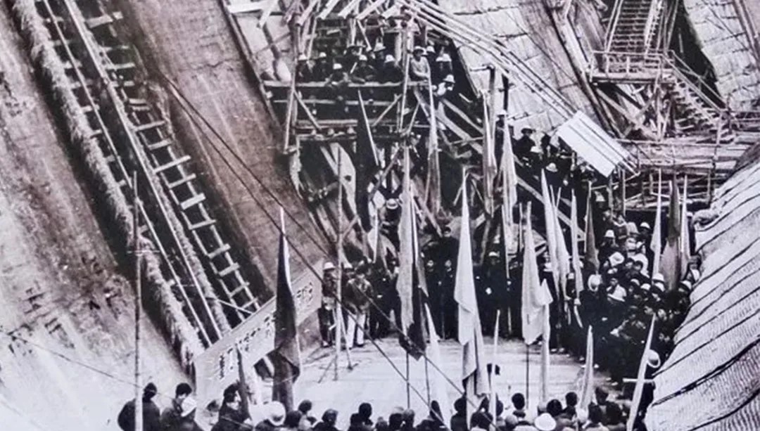 1956年水庫(kù)開工建設(shè),在沒有外國(guó)專家援助、缺乏現(xiàn)代化機(jī)械設(shè)備的艱難環(huán)境下,老一輩治淮人不畏艱苦、奮勇作戰(zhàn),自主設(shè)計(jì)斜鋼塔箕斗提升設(shè)備,可以就地制造、操作簡(jiǎn)單,有效解決了混凝土運(yùn)輸問題。創(chuàng)新性發(fā)明管道循環(huán)水冷卻方式,應(yīng)用在重力拱壩大體積混凝土澆筑中,解決了壩體內(nèi)部混凝土溫度控制的問題。這些技術(shù)創(chuàng)新,極大地推動(dòng)了工程建設(shè)的進(jìn)度,也將水利建筑技術(shù)推向新的高度。