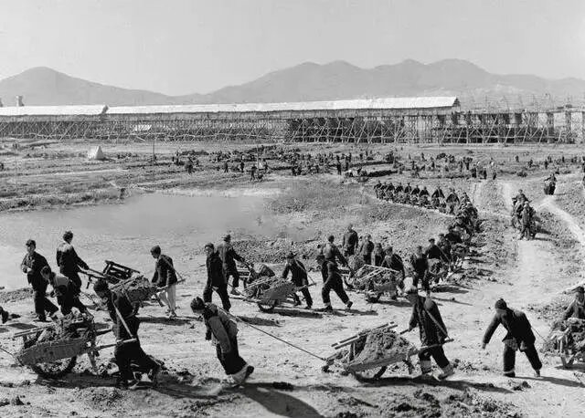 1958年1月15日,治淮委員會向水電部報送《淮河蚌埠閘設(shè)計任務(wù)書》。同年3月12日,水電部批復同意,蚌埠閘開始興建。當時正值國家面臨緊急困難時期,糧食、建材極為緊缺。在艱苦卓絕的條件下,治淮先輩們用小推車運料,肩扛背馱水泥鋼材,以血汗鑄就了蚌埠閘。